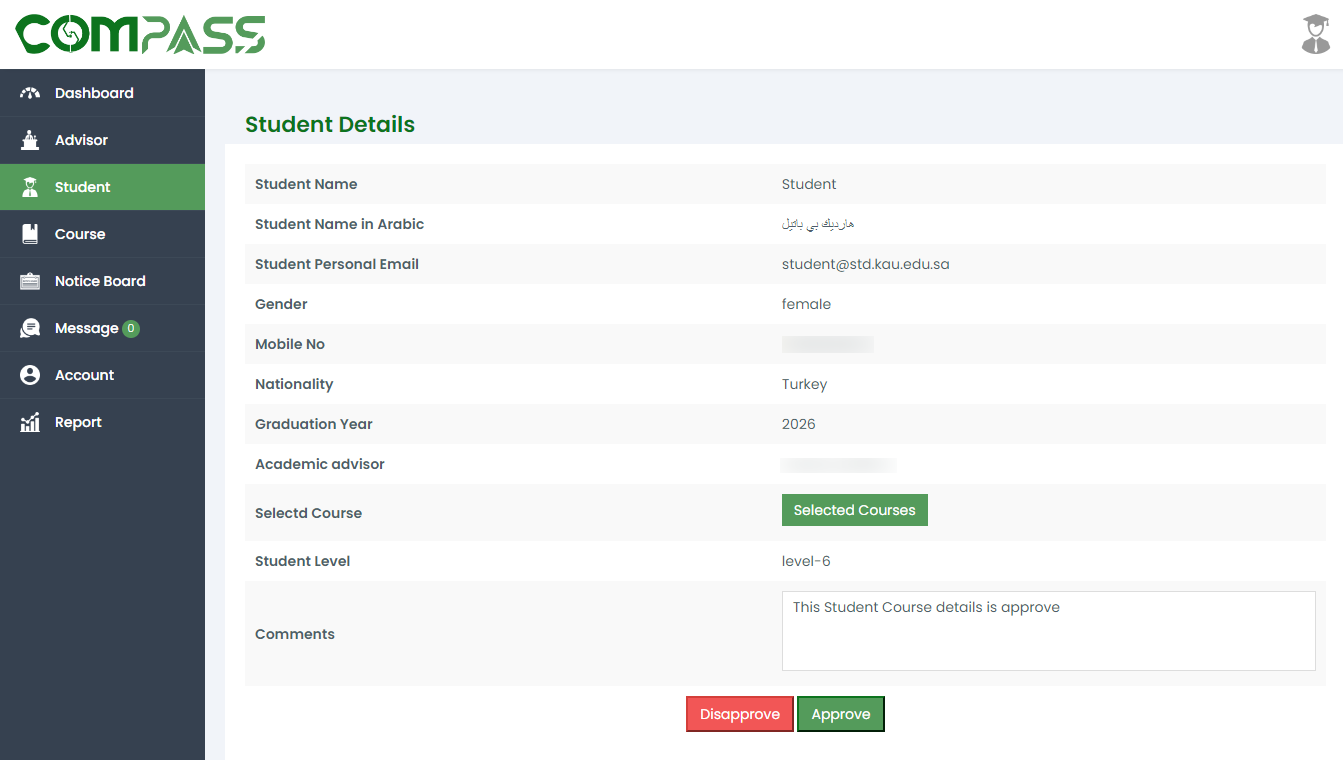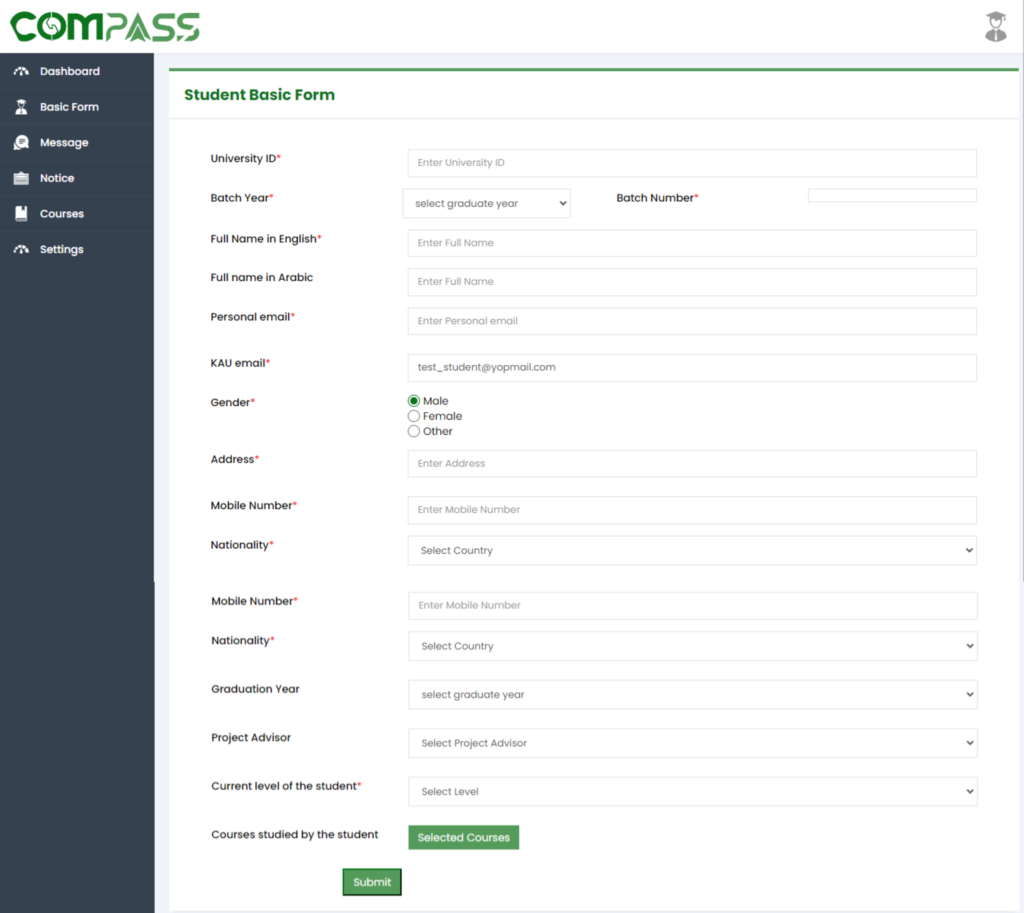 Students will first fill out the Basic Form. The selected Project Advisor will then review the details and either approve or disapprove the form.