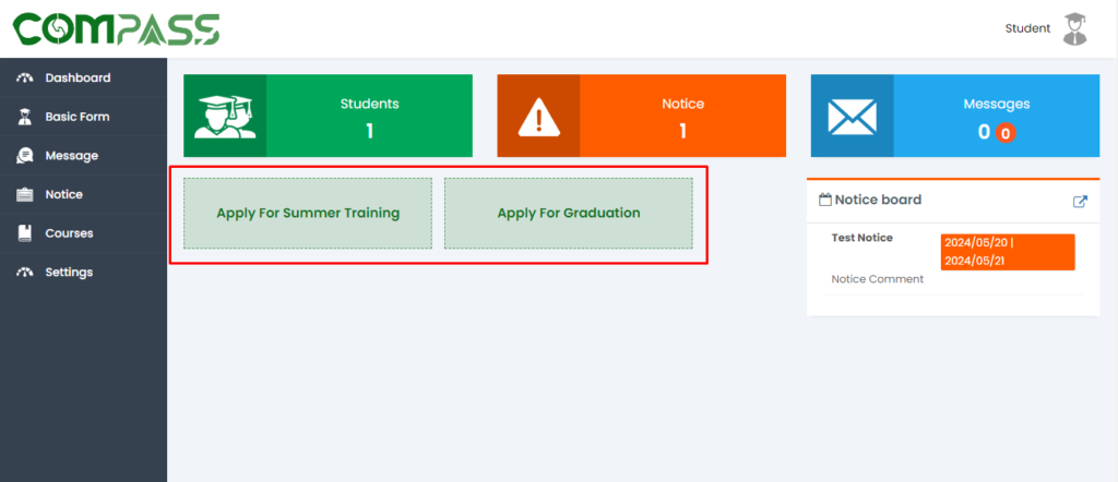 After accessing the dashboard, students must complete the required forms.