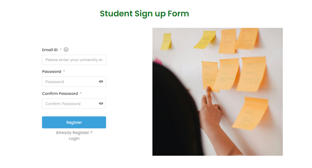 Students must register on the website using their authorized university email ID.